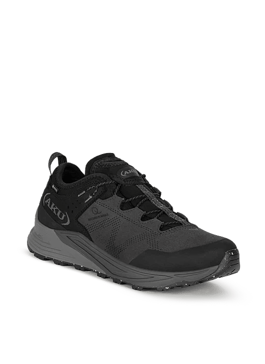 De Aku Omnia V-Light GTX is een veelzijdige wandelschoen, geschik voor diverse buitenactiviteiten, waaronder licht en snel wandelen, e-biken en stedelijke avonturen. Het bovenwerk is gemaakt van niet-dierlijke en gerecycleerde materialen. De waterafstotende handelingen zijn PFAS-vrij, evenals de Gore-Tex voering. De twee dichtheden van de tussenzool en het loopvlak zijn samen gegoten om het gebruik van lijm te verminderen. Het gebruikte EVA-materiaal, wat voor demping en zachtheid zorgt, is gedeeltelijk biobased. De slijtzool is gemaakt van gerecycleerde rubber met een asymmetrisch onwerp, synchroon met het AKU Elica Natural Stride System, dat de biodynamische efficiƫntie bevordert. Tot slot heeft de binnenkant van de voorvoet een verhoogde neuskapdichtheid voor betere grip op e-bikepedalen.