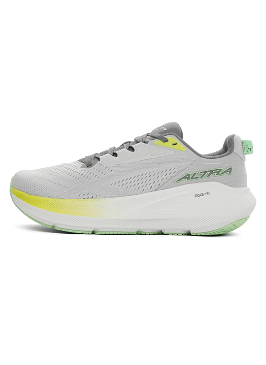 In de tussenzool wordt gewerkt met het Altra EGO P35-foam. Deze foam is zachter en responsiever dan zijn voorganger en biedt extra zachtheid en return bij elke pas. De brede basis en de lage offset dragen bij tot een uitstekende stabiliteit en een natuurlijke afwikkeling van je voet. Bijgestaan door de aanwezige rocker krijg je een vlotte afwikkeling van de voet een een krachtige afzet.