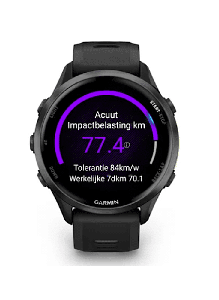 De Garmin Forerunner 970 is het nieuwste, beste en helderste smartwatchtoestel dat Garmin momenteel aanbiedt. Bescherming verzekerd met een Amoled-scherm, saffierglas en een titanium rand. Hartslagmeting aan de pols, lange batterijduur, slaap- en trainingsfuncties, raceprognoses, kaart- en navigatiefuncties zijn maar enkele van de talloze toepassingen bij dit sporthorloge. Koppel de Garmin Forerunner 970 met Garmin Connect en ontdek nog veel meer mogelijkheden!