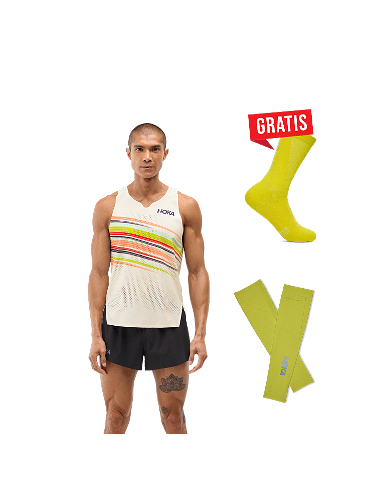 Ontdek nu de Hoka Race Day Set en ontvang een gratis paar sokken. Deze set bestaat uit een technisch singlet, korte broek en arm sleeves. Zo ben je helemaal klaar om op wedstrijddagen een nieuwe toptijd te lopen!