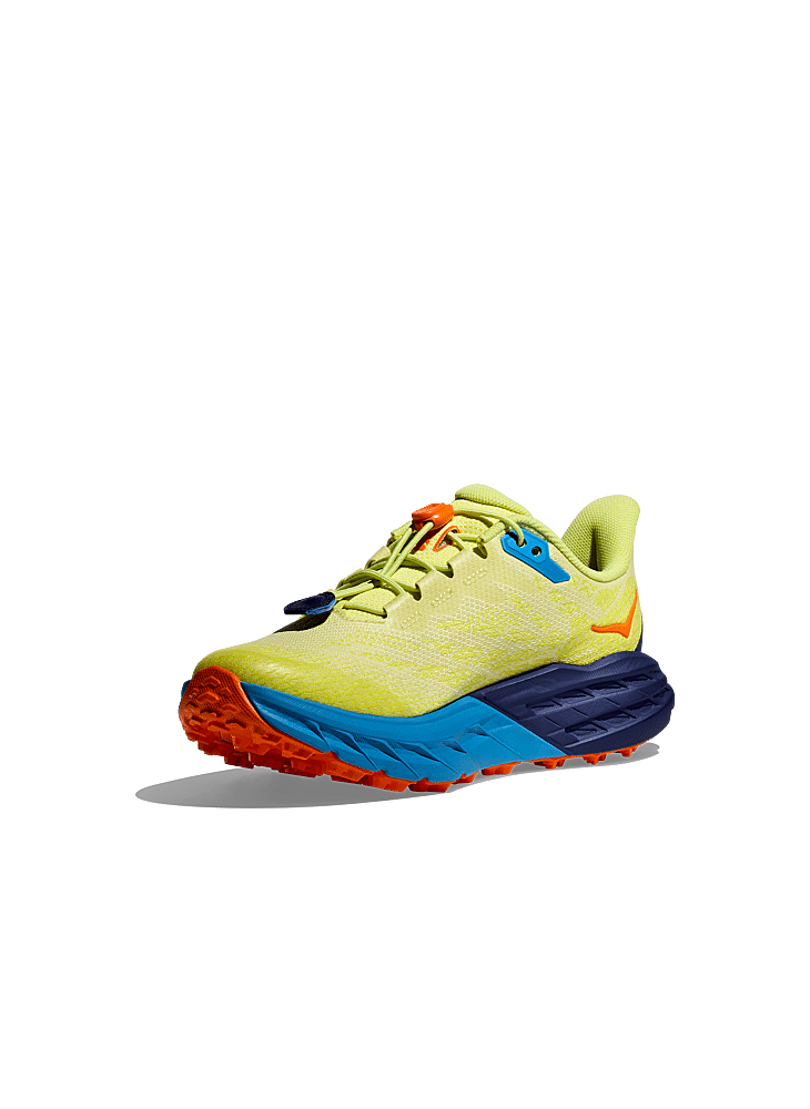 De splinternieuwe Speedgoat 5 Youth is gebaseerd op de blauwdrukken van het originele trailicoon van HOKA en is ontworpen met dezelfde robuuste prestatiekenmerken als zijn voorganger. Deze trailblazer van de volgende generatie is doordacht ontworpen met het oog op duurzaamheid en heeft een bovenstuk van geweven mesh met 21% rPET-garens, een ultralichte middenzool van 30% suikerriet, robuuste groeven en een snelle vetersluiting die je snel onderweg kunt aanpassen.