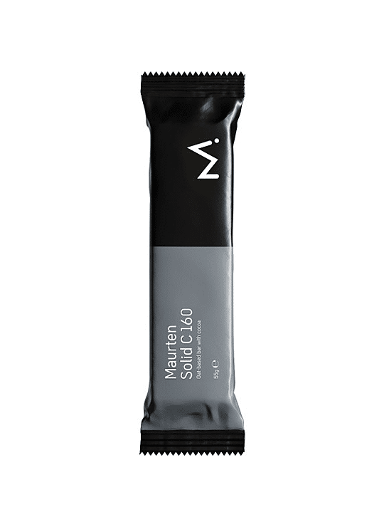 De Maurten Solid 160 is een energiereep om je koolhydraten aan te vullen én is makkelijk verteerbaar. Het is een op haver en rijst gebaseerde reep die bovendien makkelijk te splitsen is in twee gelijke delen om het koolhydraatverbruik te berekenen en juist af te stemmen.